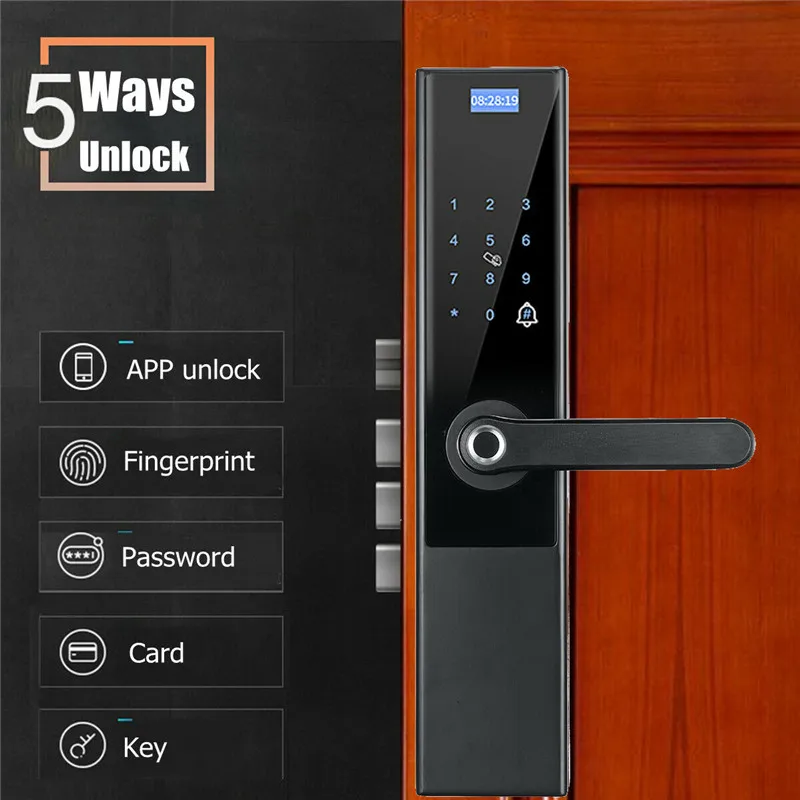 Digital Biometric Fingerprint Lock Keyless Smart Door Lock APP+ Touch+ Password +Key+pad Card+ Fing