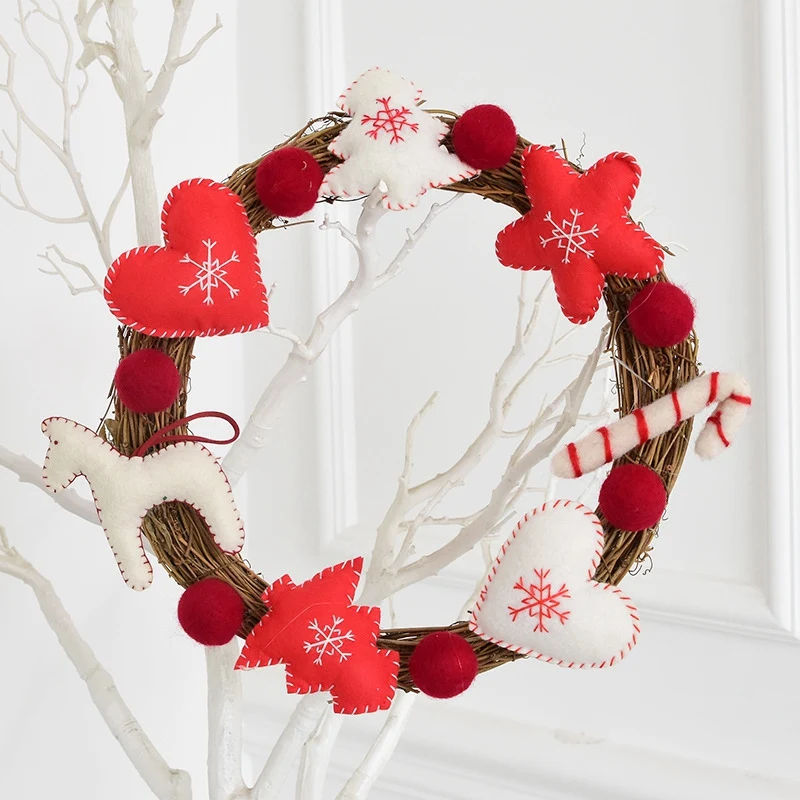 HOT-Christmas Wreath Front Door Decorations Garland Xmas Winter Holiday Theme Supplies Hanging Orna